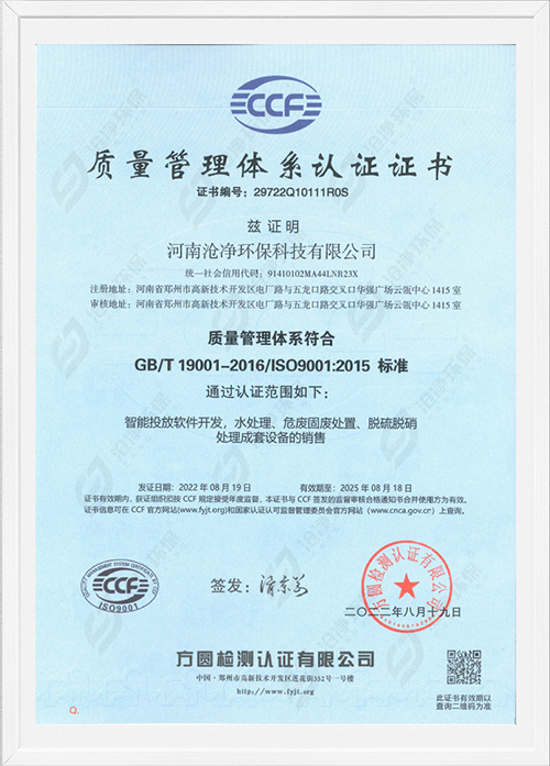 滄凈環(huán)保,是一家集科研、設(shè)計(jì),工程施工、調(diào)試于一體的智能粉體投加系統(tǒng)-國(guó)家級(jí)高新技術(shù)企業(yè)【編號(hào):GR202341000885】,旗下產(chǎn)品涵蓋水處理、危廢固廢處置,脫硫脫硝處理等領(lǐng)域,且通過(guò)ISO 9001:2015質(zhì)量管理體系認(rèn)證。